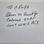 Details: WW2 flying ace Abner M. Aust Jr. signed note. 3x5 inches… Read More →