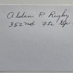 Details: WW2 pilot Alden P. Rigby signature cut. 3x5 inches… Read More →
