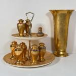 Lot 4K: Vintage Gold Encrusted Ceramics: Weeping-Bright Gold 2-Tier Tray, 22Kt W (20 photos)