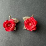 Red Rose Clip On Vintage Earrings (3 photos)
