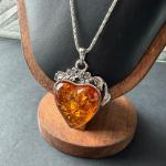 Glass Heart Pendant Silver Tone Necklace (5 photos)