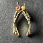Vintage Gold-Tone Double Wishbone Brooch Featuring A Faux Pearl And A Pink Rhine (3 photos)