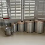 Lot 249W: Vintage Aluminum Italian Heller Hostessware Canisters W/ Glass Jars (11 photos)