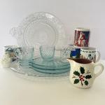 Lot 253K: Vintage Stangl Holly Cream Pitcher, Blue Tint Snowflake Snack Plates W (24 photos)