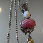 Heavy Sterling Chain & Pendant Pearl, Citrine Quartz & Rhodochrosite (5 photos)