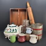 Lot 102: Vintage Dinnerware Creamers, Sifter, Rooster Teapot, Utensil Tray & Mor (24 photos)