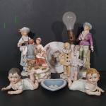 Lot 217: Pierrot And Pierrette Japan Porcelain Lamp, Price Import Music Box, Bis (22 photos)