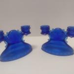 Pair Of Vintage Cobalt Blue Glass L. E. Smith Mt. Pleasant Design Double Arm Can (6 photos)