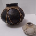 Pair Of African Sahel Pottery Travel Pots With Leather Banding Choice B (13 photos)