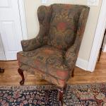 This wingback chair has a muted floral upholstery with wooden legs. Chair… Read More →