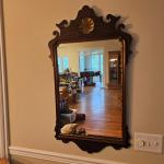 Gold highlights accent the inside frame of this wooden wall hanging mirror with… Read More →