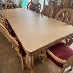 Lot 518: Dining Room Table W/Inlaid Features & Chair Set (2 photos)