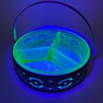 Vintage Uranium Glass Divided Relish Dish W/ Metal Carrier (7 photos)