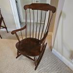 Dark wood rocking chair with decorative spindles. Tall back and arms have plain… Read More →