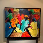 Striking framed Haitian / Caribbean folk art style wall art featuring a repeated… Read More →