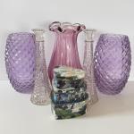 Lot 82K: Purple Pineapple Like Vases, Clear Crystal Candle Sticks, Cranberry Vas (15 photos)