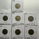Lot Of 7 Average Circulated Condition Liberty V-Nickels As Pictured #3C. (2 photos)