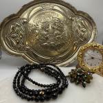 Lot 126: Embossed Metal Trinket Tray, Milk Glass Dresser Tray/Plate, Vintage Gla (10 photos)