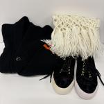 Lot 104: Vintage Black Knitted Sweater, Superga Footwear & Crocheted Scarf/Shawl (13 photos)