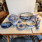 Lot Of Blue Willow China , Bowls, Candle Sticks, Turtle, Pitcher, Wedgwood And Mor (19 photos)