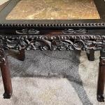 Chinese Hongmu Carved Side Table W/Agate/Marble Slab Top Qing Dynasty 19Th Centu (5 photos)