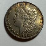 1896-P Au58 Condition Toned Morgan Silver Dollar Coin #121 As Pictured. (2 photos)