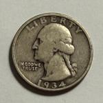 1934-P Double Die Obverse Vg/Fine Condition Washington Silver Quarter Dollar. (4 photos)