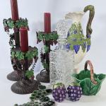 Lot 16K: Grapes On The Vine: Trio Of Candle Holders, 1988 Hanson Group Ceramic L (2 photos)