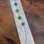 Cute gold tone bracelets with Malachi looking charms. 7 inches plus extender.… Read More →