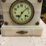 Stunning French Antique White Onyx Mantel Clock – Brass Ornate Mounts, Working (2 photos)