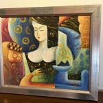 Original Acrylic Painting - Serene Woman With Vase & Flowers, Signed By Artist (4 photos)