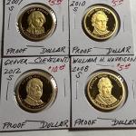 Lot Of 4 Golden Proof Presidential Dollars Group-2 As Pictured, (1 photo)